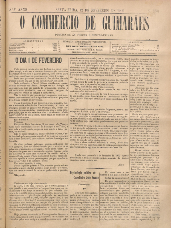 Comércio de Guimarães, nº 2331, de 12/02/1909