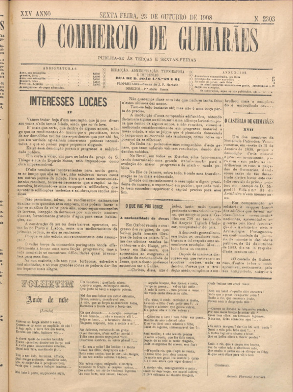Comércio de Guimarães, nº 2303, de 23/10/1908
