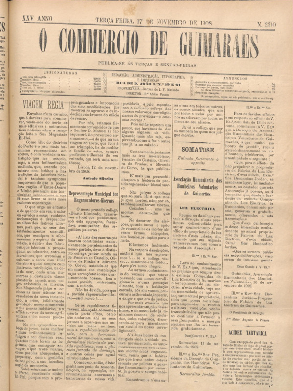 Comércio de Guimarães, nº 2310, de 17/11/1908