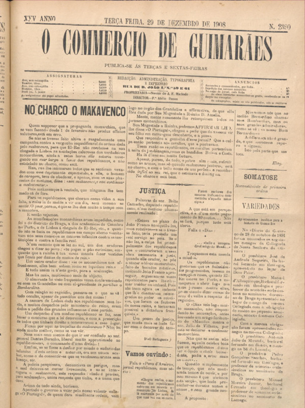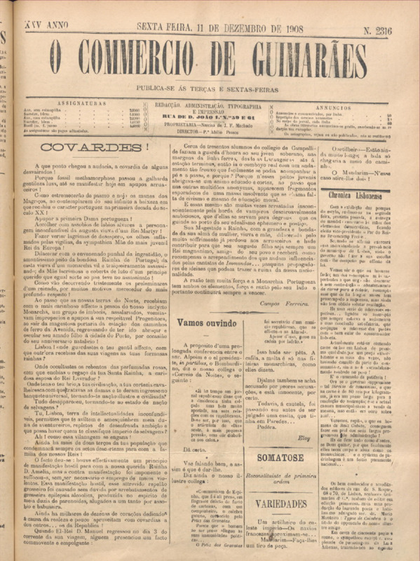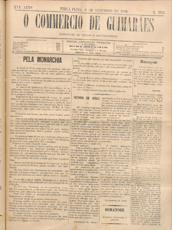 Comércio de Guimarães, nº 2315, de 08/12/1908