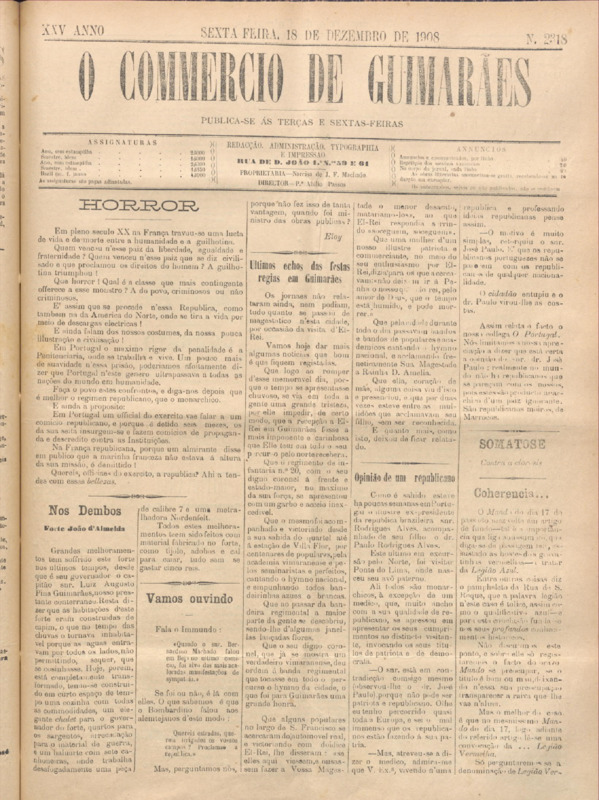 Comércio de Guimarães, nº 2318, de 18/12/1908