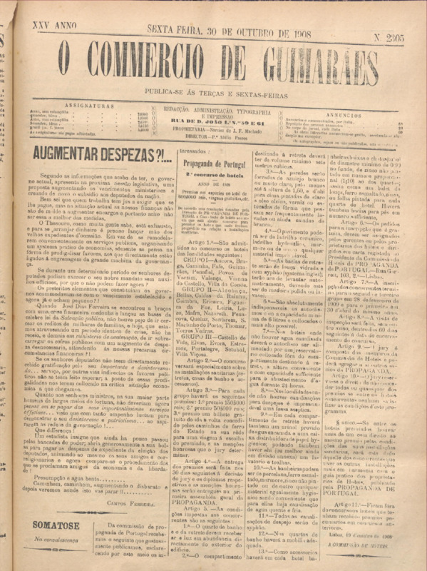 Comércio de Guimarães, nº 2305, de 30/10/1908
