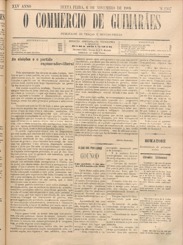 Comércio de Guimarães, nº 2307, de 06/11/1908