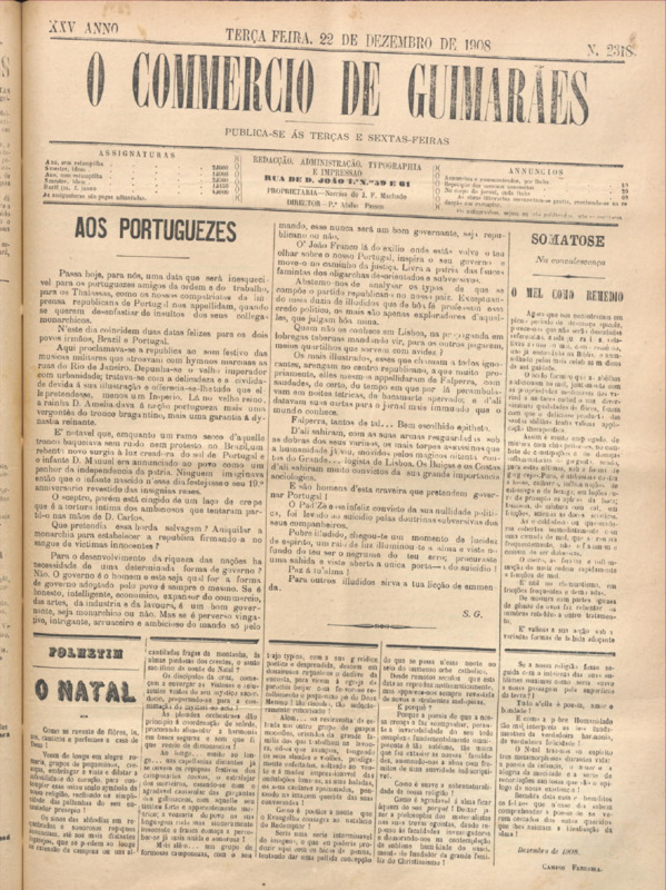 Comércio de Guimarães, nº 2319, de 22/12/1908