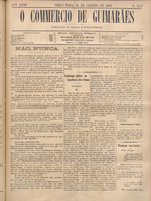 Comércio de Guimarães, nº 2327, de 26/01/1909