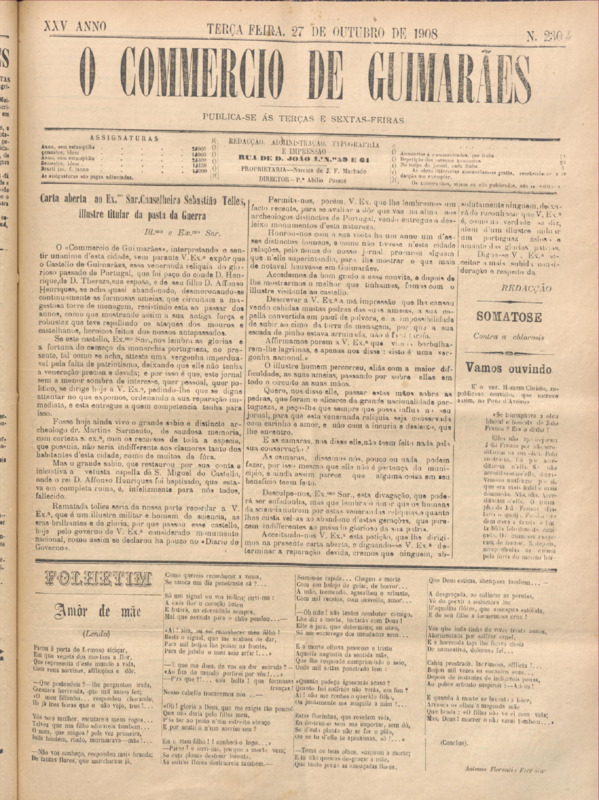 Comércio de Guimarães, nº 2304, de 27/10/1908