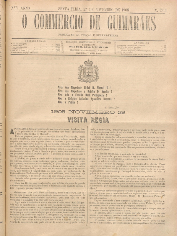 Comércio de Guimarães, nº 2313, de 27/11/1908