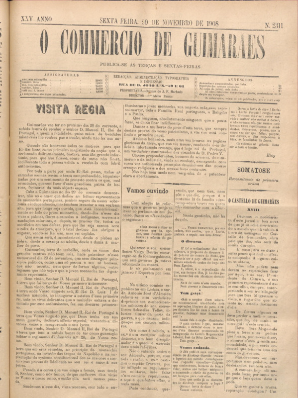Comércio de Guimarães, nº 2311, de 20/11/1908