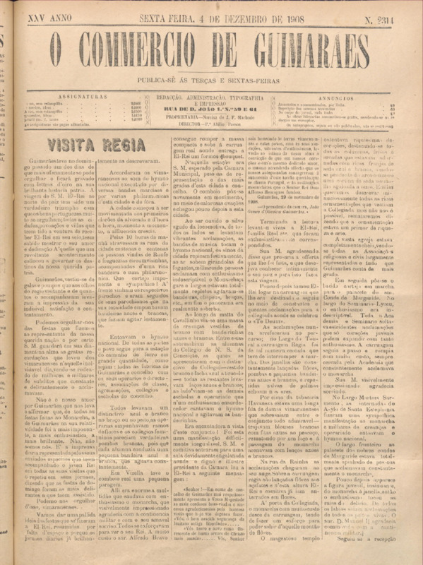 Comércio de Guimarães, nº 2314, de 04/12/1908