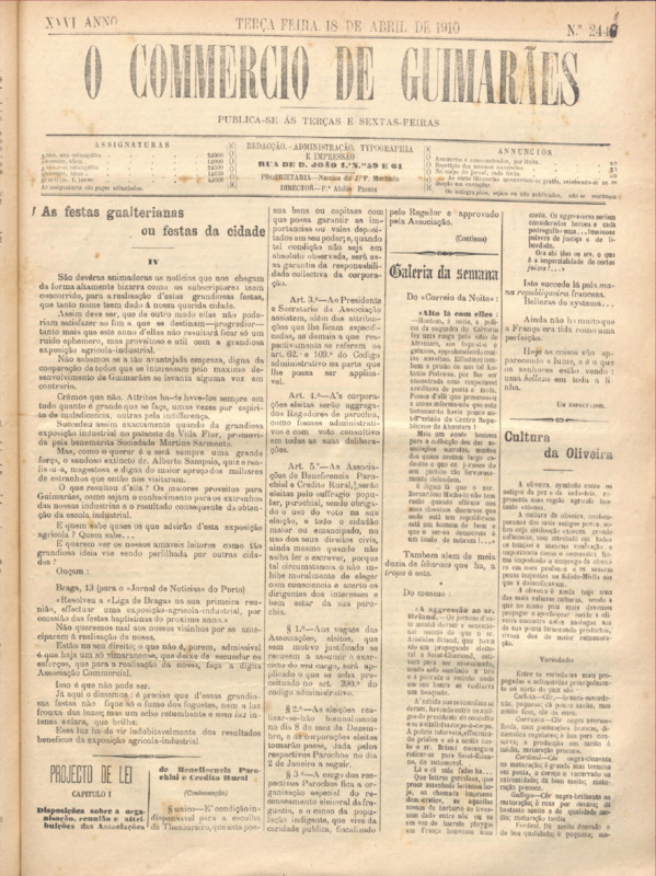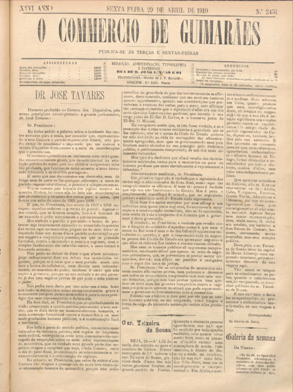 Comércio de Guimarães, nº 2450, de 26/04/1910