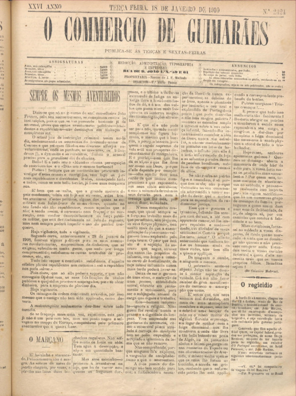Comércio de Guimarães, nº 2424, de 18/01/1910
