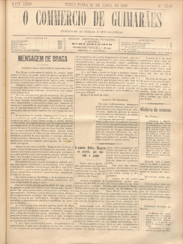 Comércio de Guimarães, nº 2446, de 12/04/1910