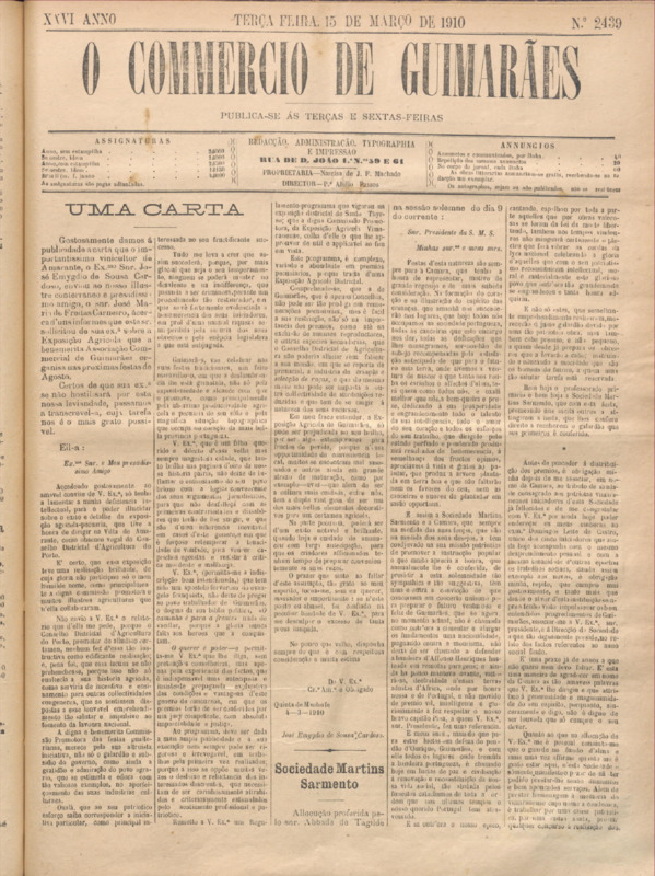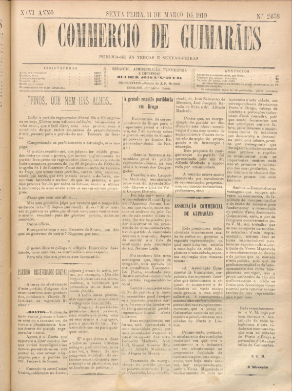 Comércio de Guimarães, nº 2438, de 11/03/1910