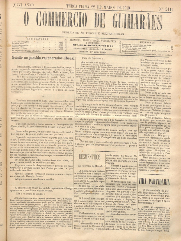 Comércio de Guimarães, nº 2441, de 22/03/1910