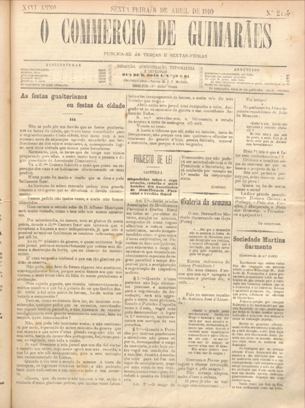 Comércio de Guimarães, nº 2449, de 22/04/1910