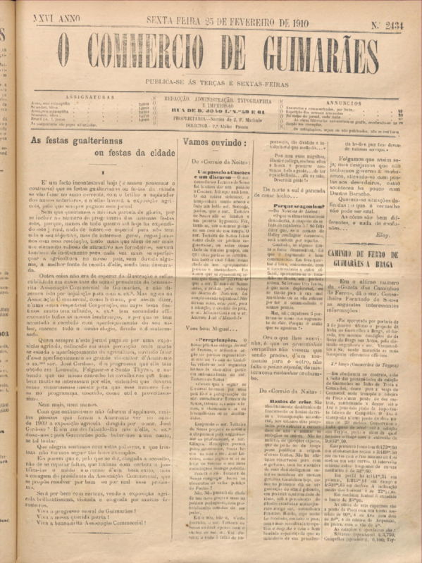Comércio de Guimarães, nº 2434, de 25/02/1910