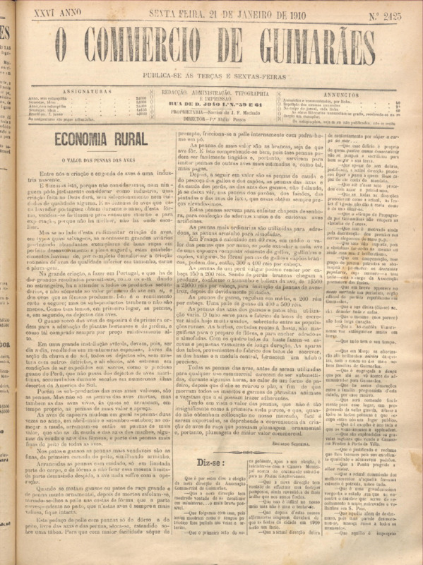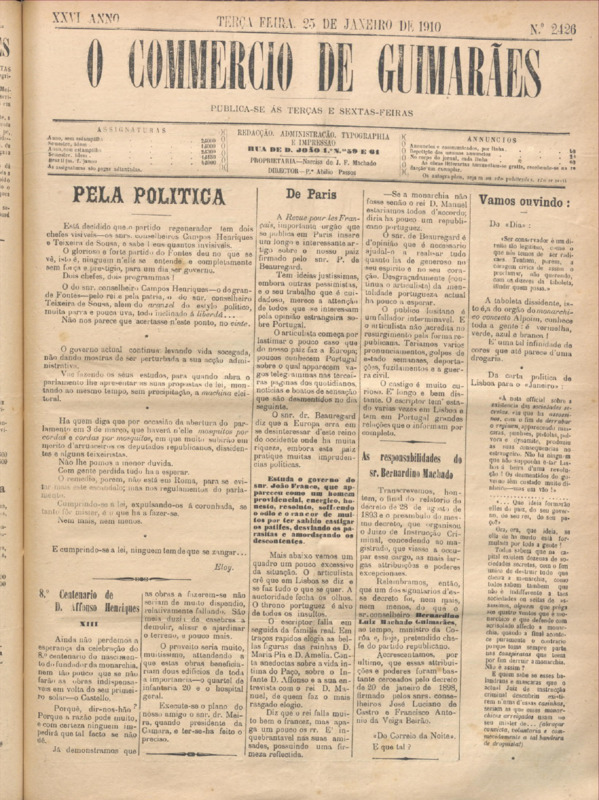 Comércio de Guimarães, nº 2425, de 21/01/1910