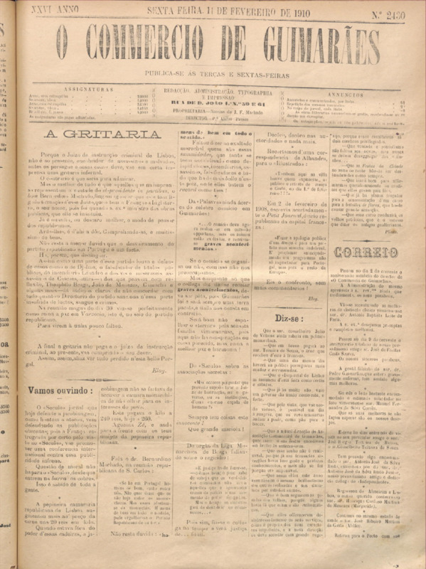 Comércio de Guimarães, nº 2430, de 11/02/1910