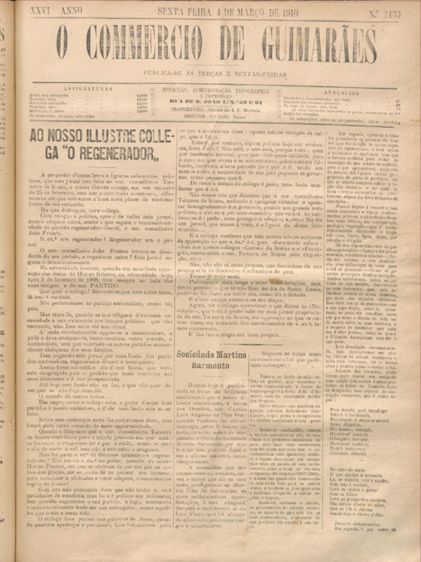 Comércio de Guimarães, nº 2436, de 04/03/1910