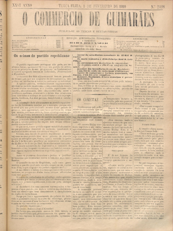 Comércio de Guimarães, nº 2428, de 01/02/1910