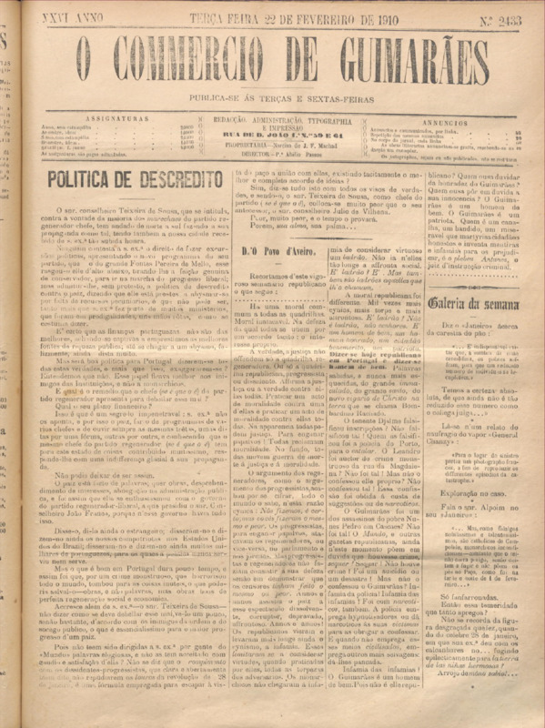 Comércio de Guimarães, nº 2433, de 22/02/1910