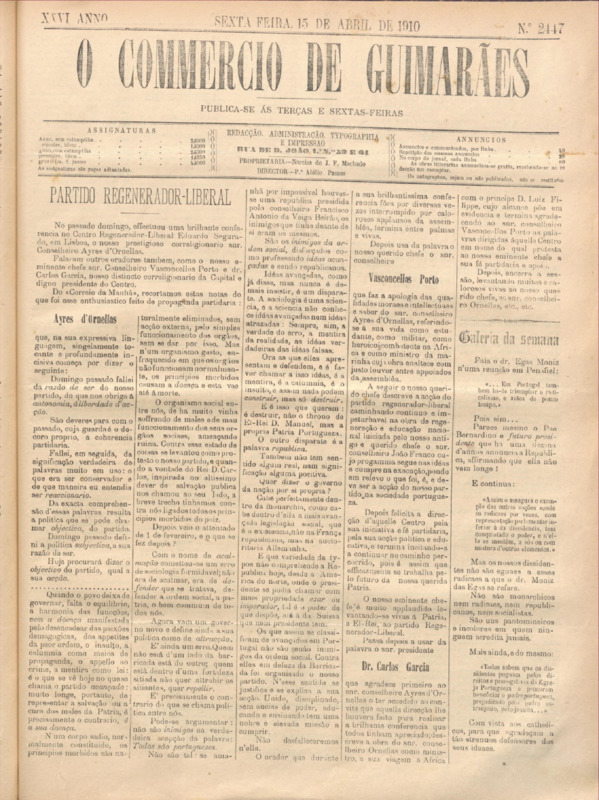 Comércio de Guimarães, nº 2447, de 15/04/1910
