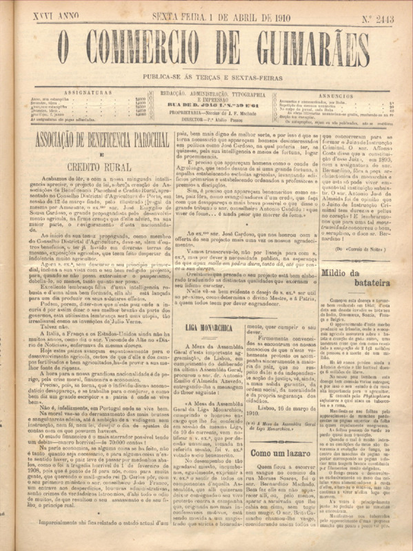 Comércio de Guimarães, nº 2443, de 01/04/1910