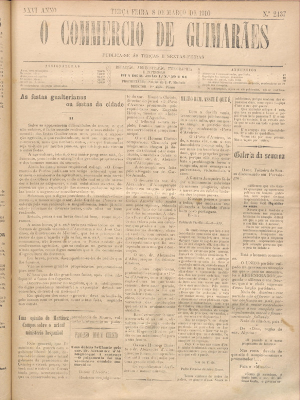 Comércio de Guimarães, nº 2437, de 08/03/1910