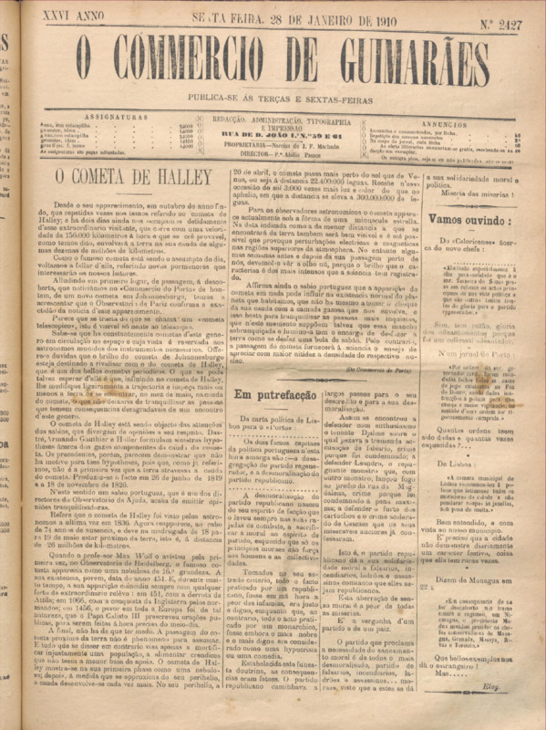 Comércio de Guimarães, nº 2427, de 28/01/1910