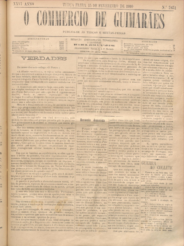 Comércio de Guimarães, nº 2431, de 15/02/1910