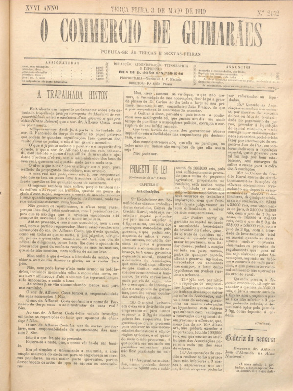 Comércio de Guimarães, nº 2452, de 03/05/1910