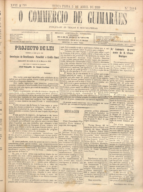 Comércio de Guimarães, nº 2444, de 05/04/1910