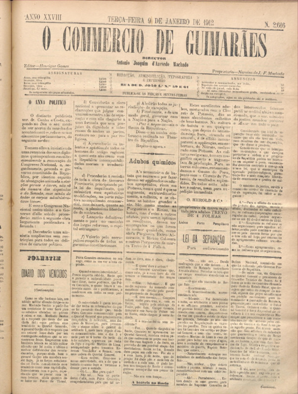 Comércio de Guimarães, nº 2616, de 09/01/1912