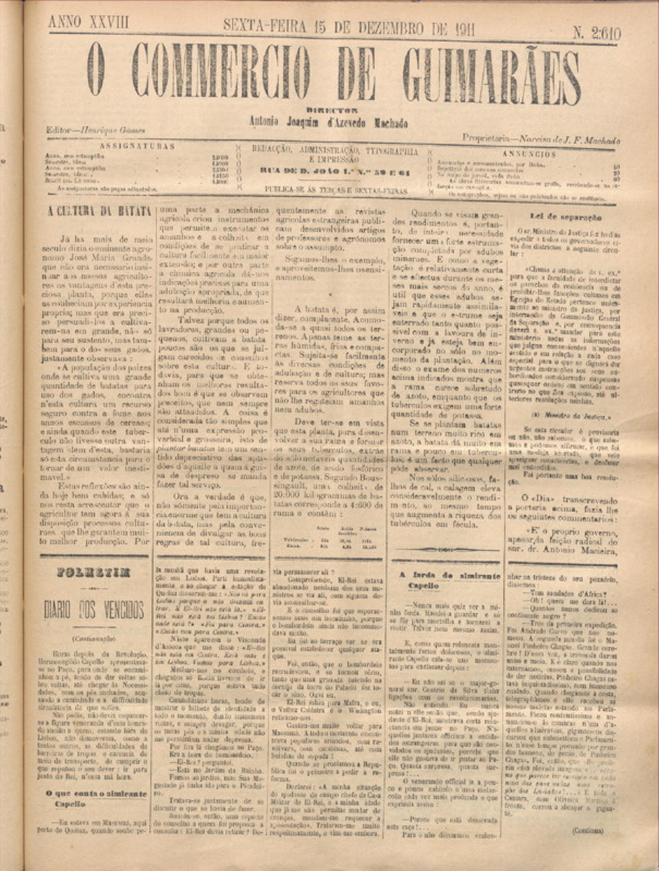 Comércio de Guimarães, nº 2610, de 15/12/1911