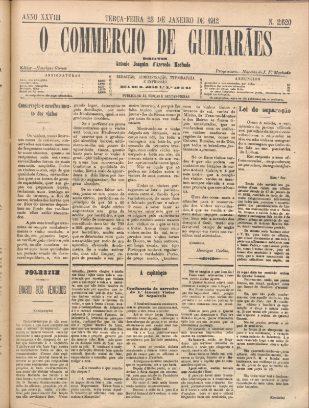 Comércio de Guimarães, nº 2619, de 23/01/1912