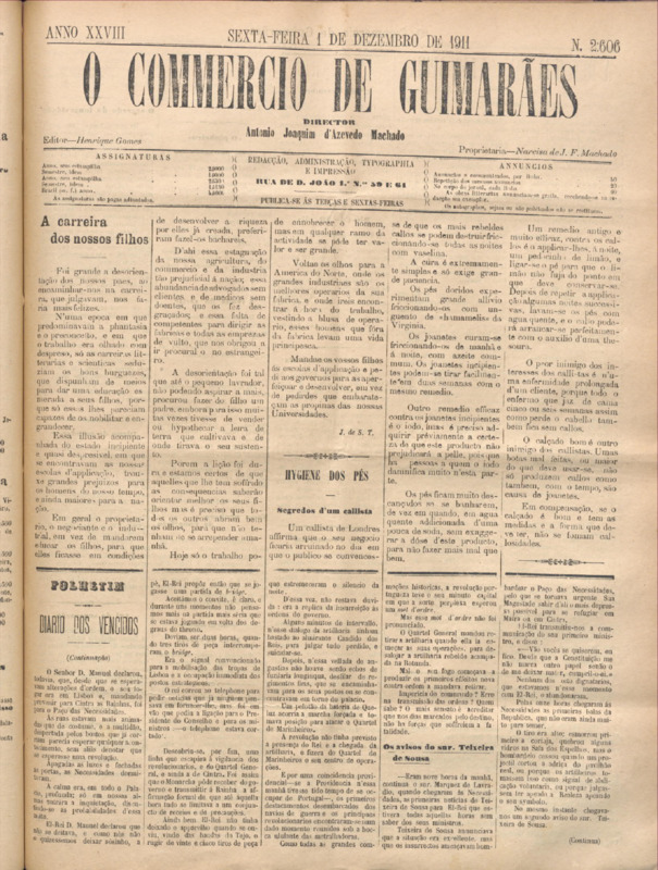 Comércio de Guimarães, nº 2606, de 01/12/1911