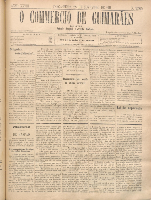 Comércio de Guimarães, nº 2605, de 28/11/1911