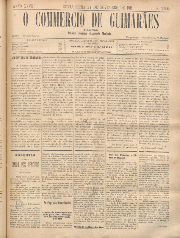 Comércio de Guimarães, nº 2604, de 24/11/1911