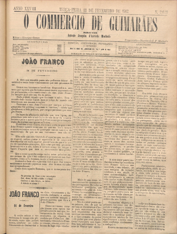 Comércio de Guimarães, nº 2623, de 09/02/1912