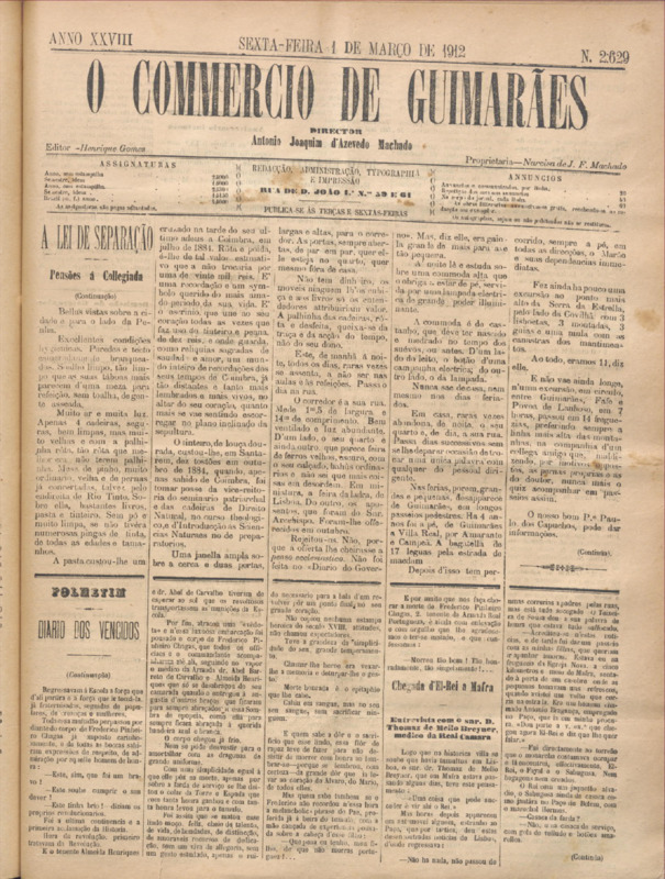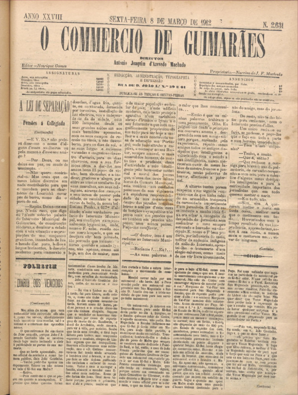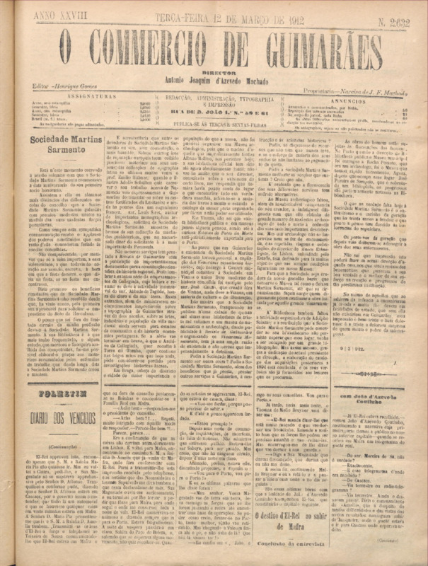 Comércio de Guimarães, nº 2631, de 12/03/1912
