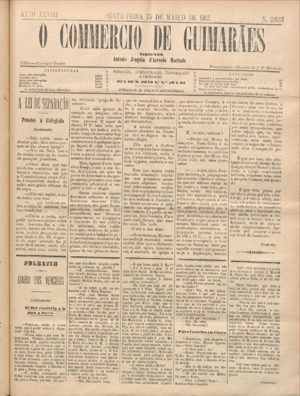 Comércio de Guimarães, nº 2632, de 15/03/1912