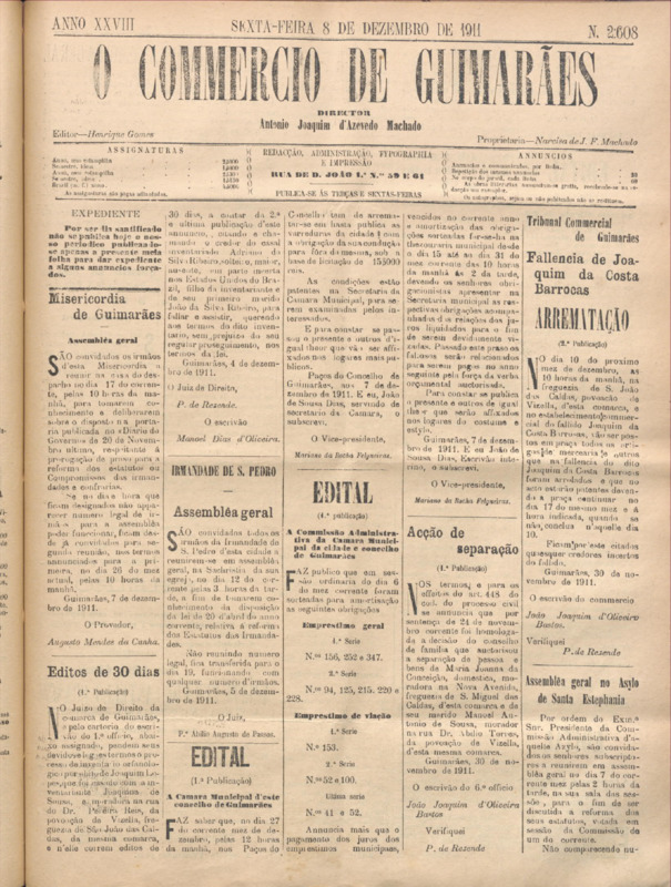 Comércio de Guimarães, nº 2608, de 08/12/1911