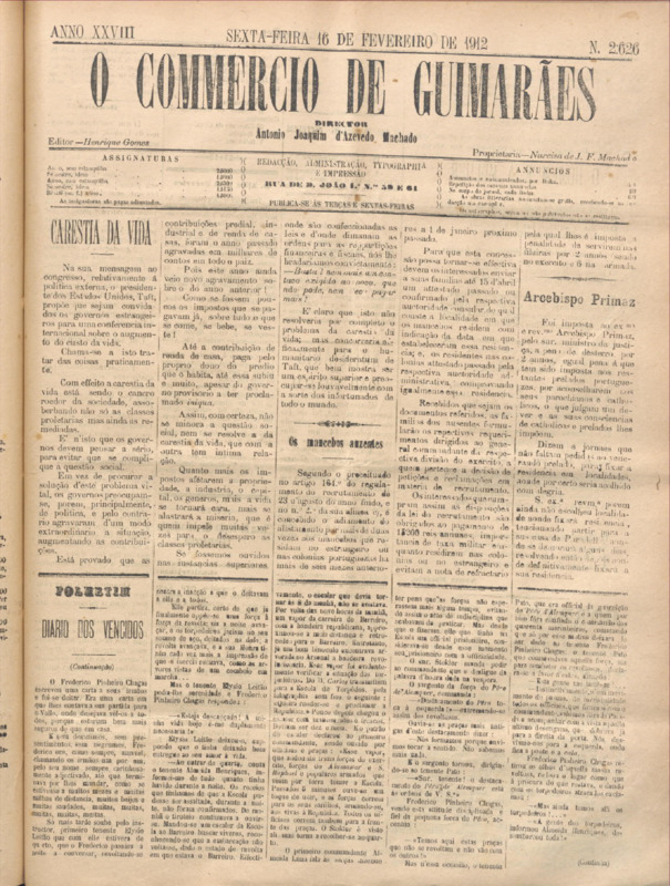 Comércio de Guimarães, nº 2625, de 16/02/1912