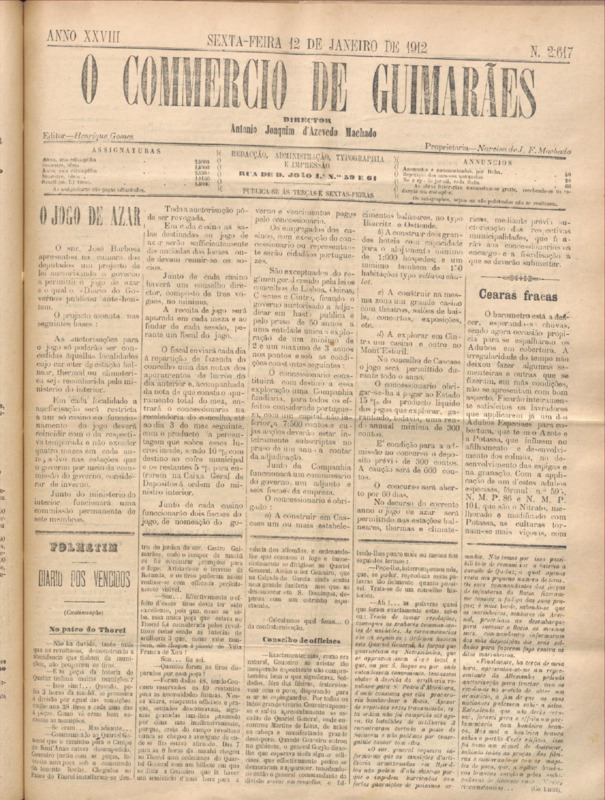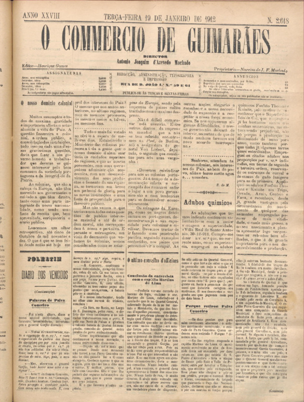 Comércio de Guimarães, nº 2617, de 12/01/1912