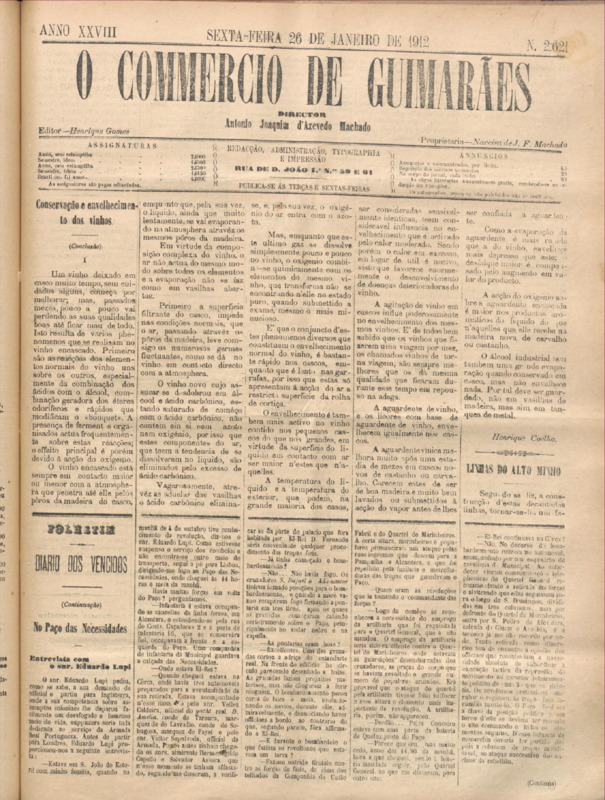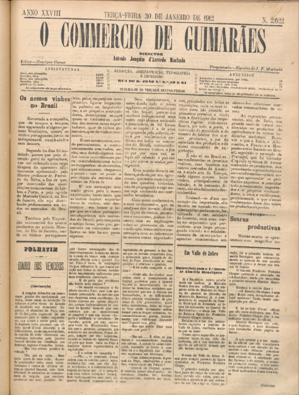 Comércio de Guimarães, nº 2621, de 30/01/1912