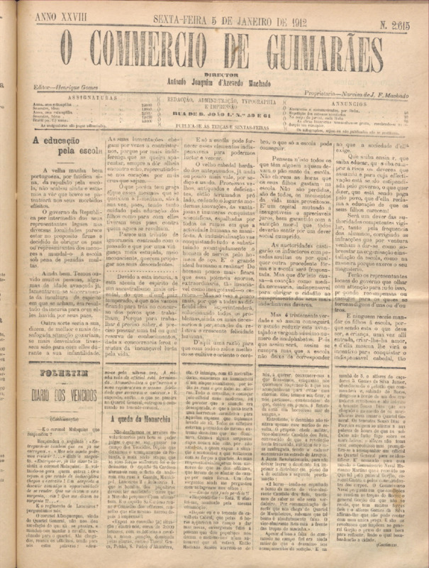 Comércio de Guimarães, nº 2615, de 05/01/1912