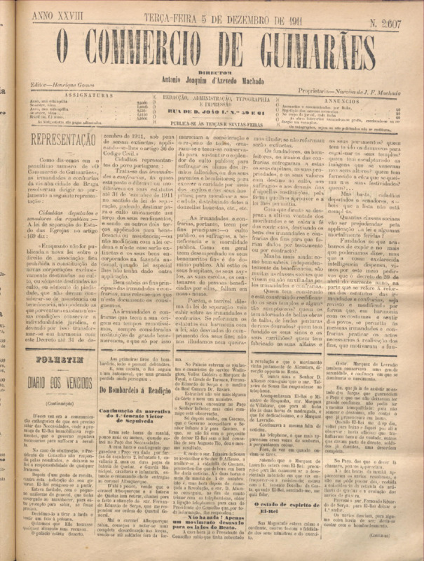 Comércio de Guimarães, nº 2607, de 05/12/1911