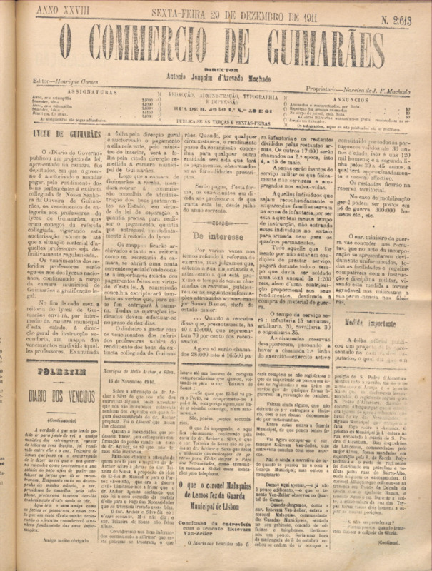 Comércio de Guimarães, nº 2609, de 12/12/1911