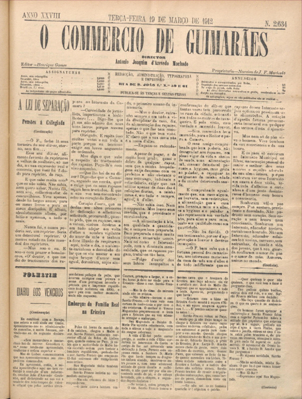 Comércio de Guimarães, nº 2633, de 19/03/1912