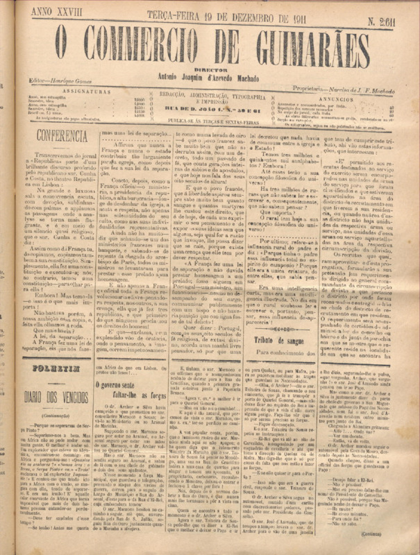 Comércio de Guimarães, nº 2611, de 19/12/1911